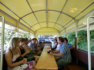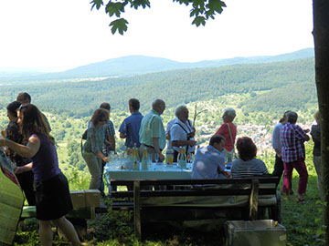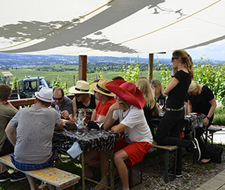 Unser Planwagen ist beliebt bei Groß und Klein, der Höhepunkt der Fahrt ist die Weinverkostung mit Häppchen.
